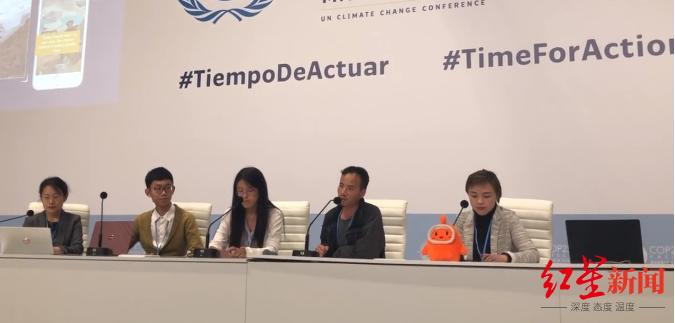 2019年,王相军(右二)在西班牙参加第25届联合国气候变化大会(现场视频截图)
