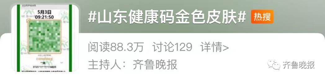 今天,#山东健康码金色皮肤#冲上热搜!