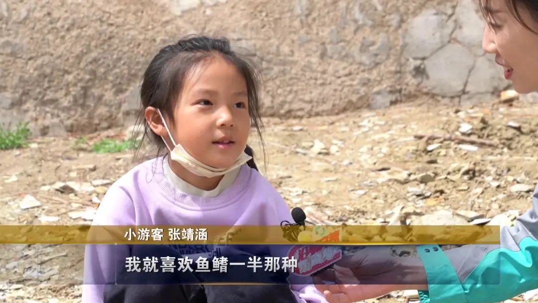 小游客 张靖涵:我就喜欢鱼鳍一半那种,其实我更喜欢鱼的化石,每个化石上面都会有纹路,然后慢慢地慢慢地就看到了。记者 金骁骁:你是从哪知道的这些事啊?