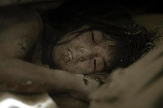 地震中,这个被压在石头下的孩子,听到妈妈选择弟弟放弃自己。她不能动,也发不出声音。在这样戏剧化的冲突之下,她用沉默、克制的哭戏,重现了令人震撼的诀别现场。
