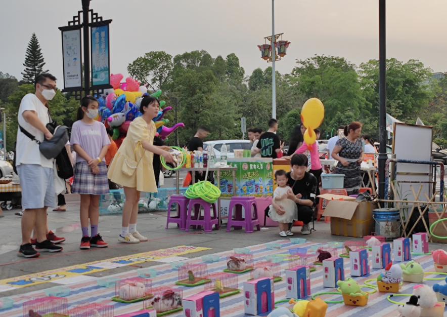 ”在横坑村口小吃街摆摊卖钵仔糕的区小姐表示,每逢周末和节假日,这里都会迎来大批游客,她也会在工作之余过来摆摆摊。“彩虹村,儿童公园,都是小朋友很喜欢的地方,很多家长带着孩子来玩。”区小姐说。记者看到,小吃街上钵仔糕、臭豆腐、炒冷面、奶茶果汁等一应俱全,还有套圈等各式各样的小游戏,大批市民游客穿梭其中,边吃边逛,好不热闹。