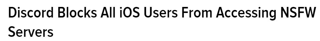 离谱的是,这交易还没谈妥呢,突然又有个消息说 Discord 突然禁止了所有 iOS 用户访问 Discord 上 NSFW 的服务器, NSFW 也就是不适合在上班时观看的内容。