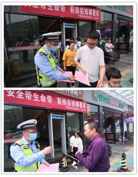 一大队联合福宁高速公路公司志愿者在福安服务区围绕“五一”假期及“安全带生命带,前排后排都要系”主题开展宣传活动。