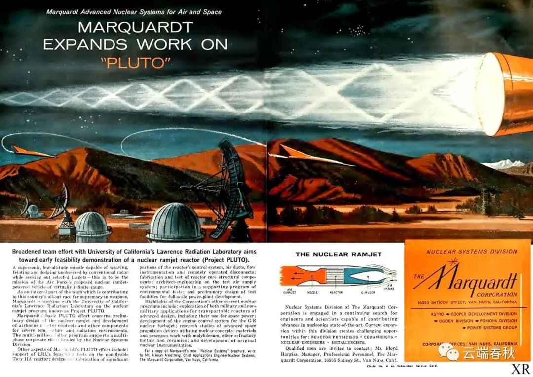 如果想要让巡航导弹在地球上实现无限航程,利用现有的石油燃料或其他化工燃料是不可能的,但是如果换作是核动力,那么一点点核原料就可能实现这个目标。使用核动力来推进导弹,从来不是什么新鲜话题,在冷战时期,美国就执行过一项绝密的“冥王星”计划,目的就是要开发一种能够在低空以超音速飞行且航程无限的巡航导弹(SLAM)。
