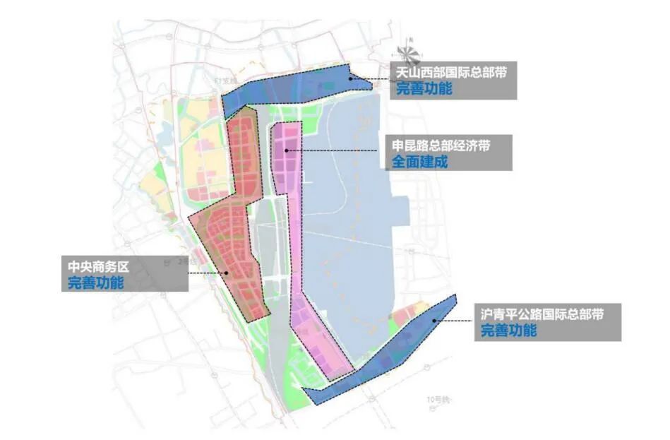 虹桥主城副中心区域划分图前湾地区:在10平方公里范围内中重点建设中央活动区、产业片区以及国际社区。