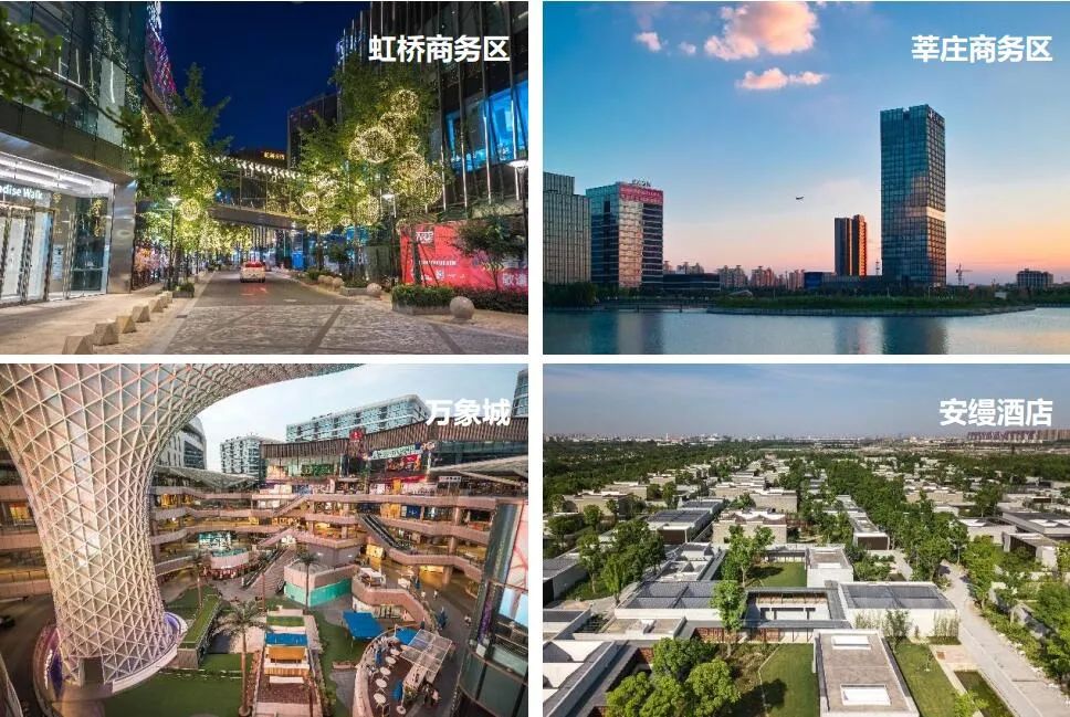 以莘庄和虹桥2个主城副中心引领,其他商务区协同发展的模式,提升现代服务业能级。