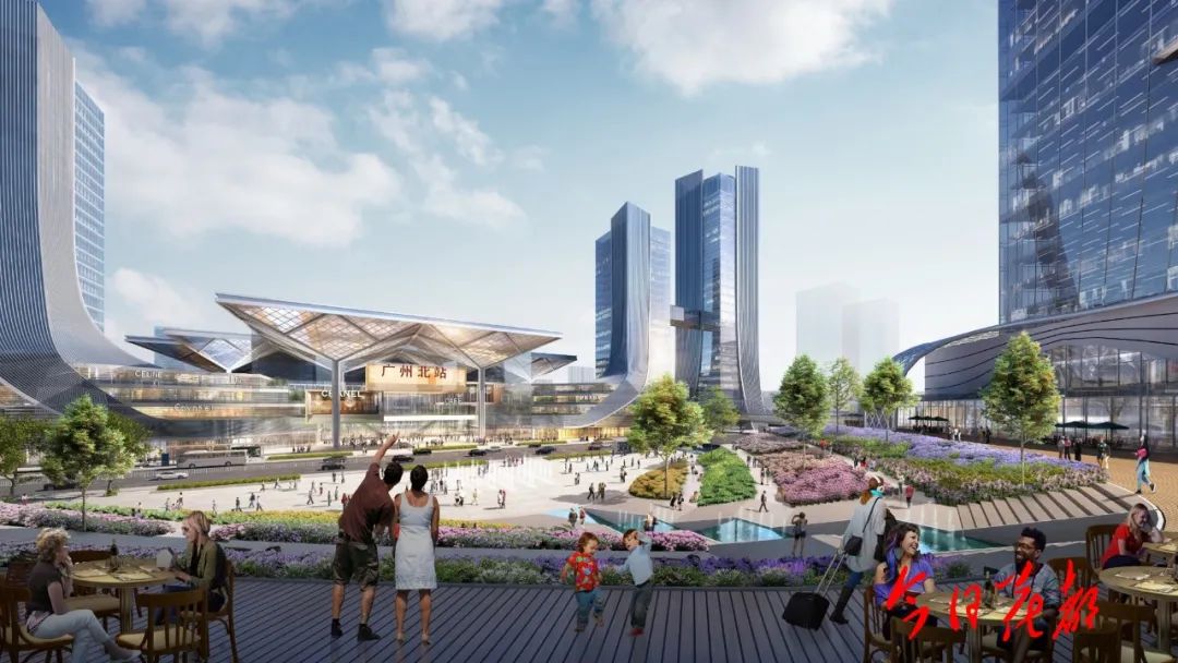 构建双循环战略链接点,打造空铁经济自由区。图为广州北站东广场效果图。空间结构