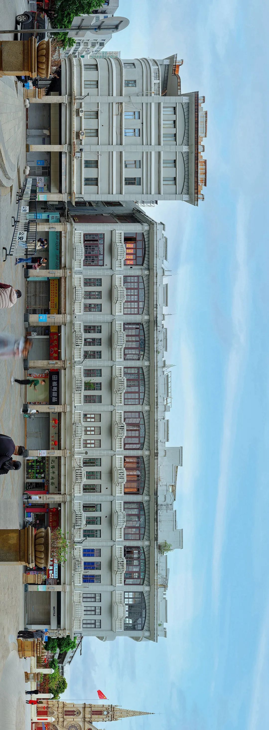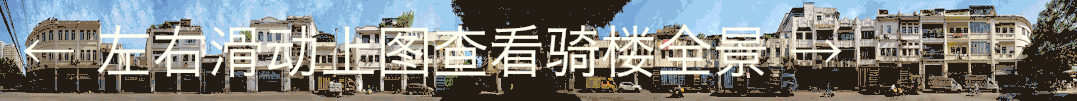 这次我在自己公众号发布的骑楼街专题尝试了新的方式。读者通过一个个框限制下的拖动,在脑海里构建出骑楼街的新视觉,它可以让读者不用通过点击就能看清楚每栋单体骑楼,以及里面的居民和经过的路人,甚至能看到门牌号的细节。丰富的细节也是全景摄影的初衷,手机屏幕和高像素细节如何并存,为了这个初衷总要做一些妥协。