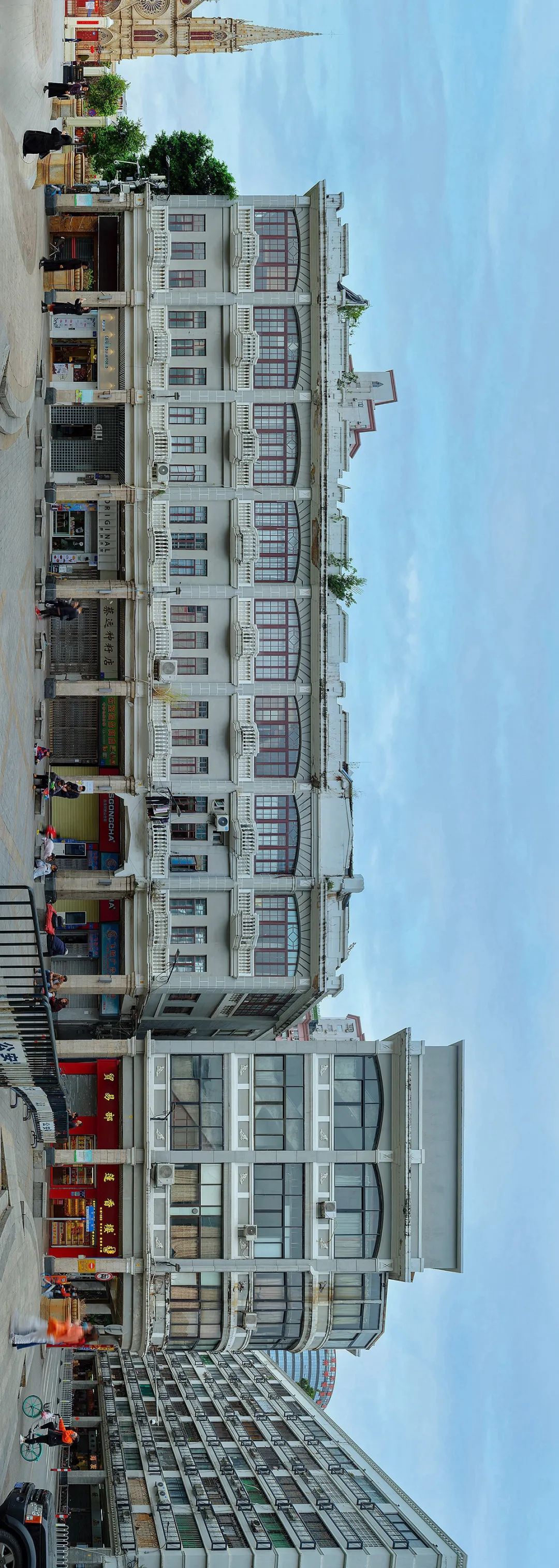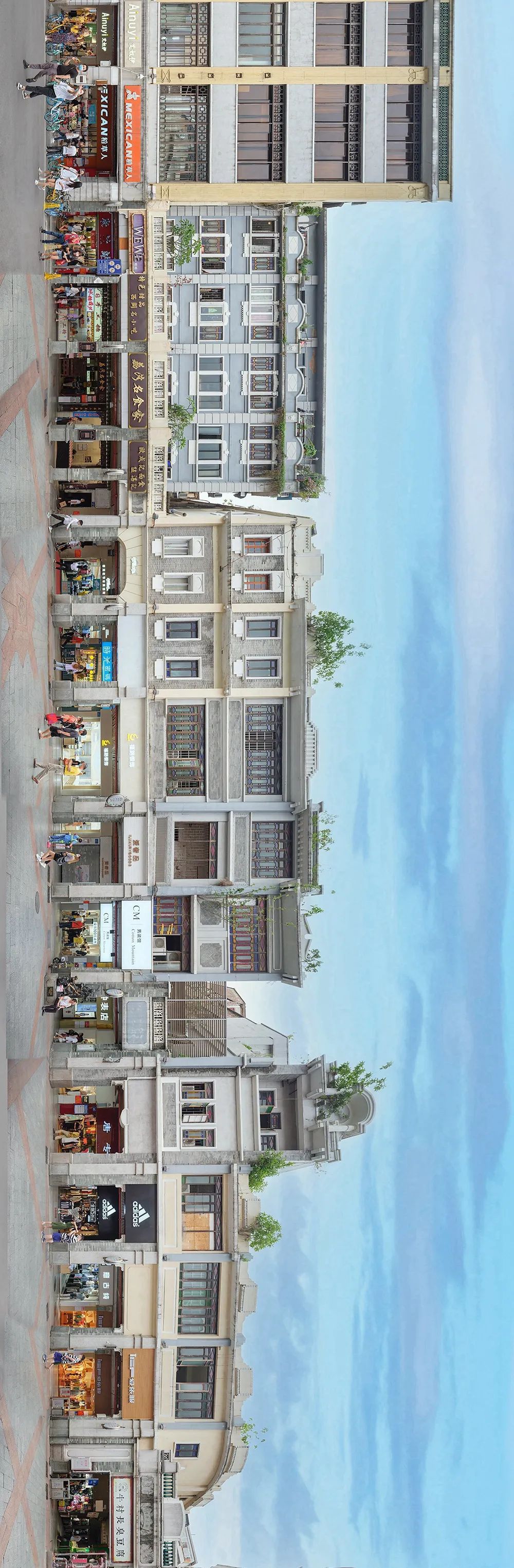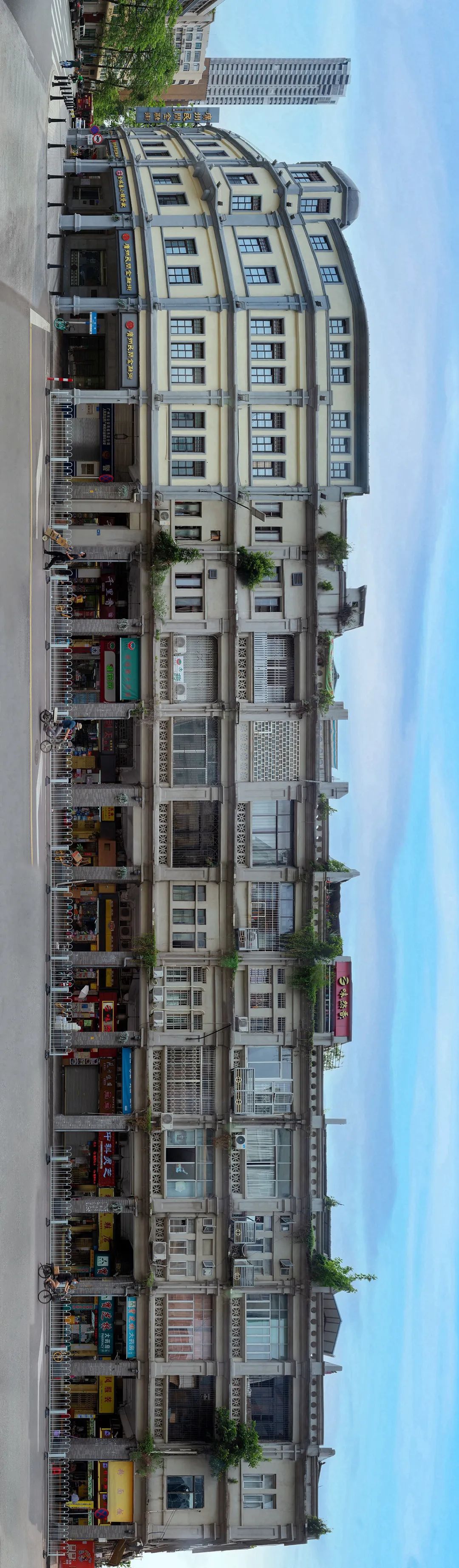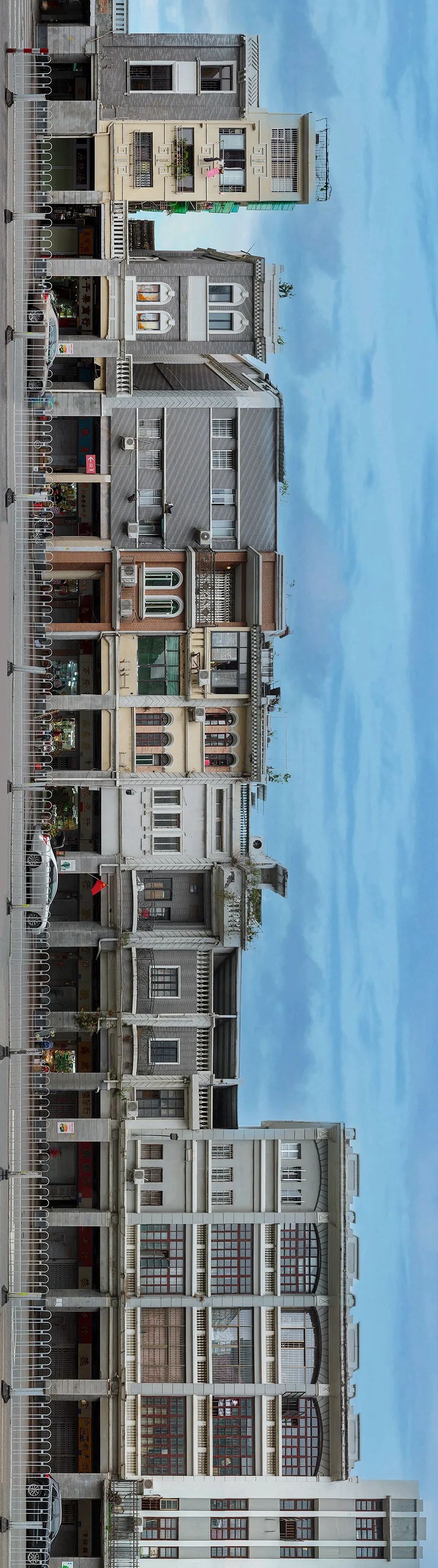 典型骑楼街是连续的 全景图为恩宁路西段北侧 全长450米(2020)极:对这种长卷图的滑动观看方式是碎片化的,而此类图片最佳的观看方式应该是全景式的整体展示,对此你怎么看?