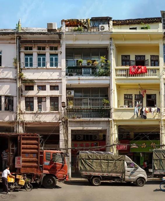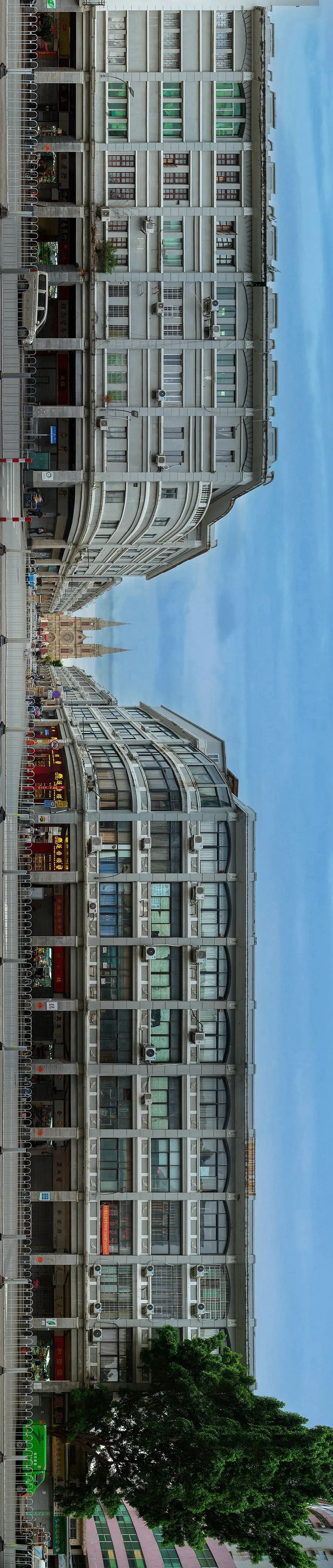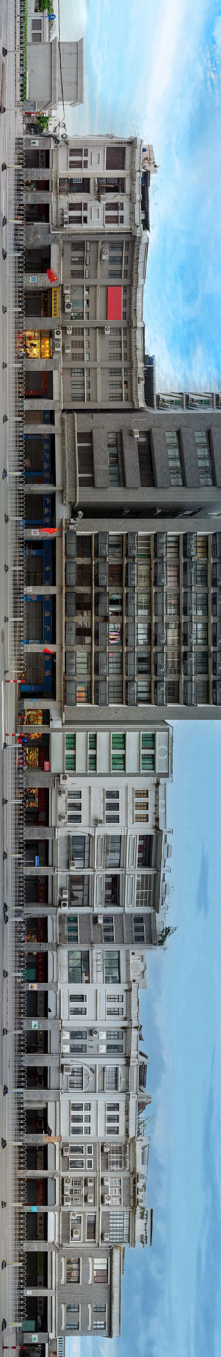 极:为什么选择用全景摄影拍摄这些楼房?张:多点全景拼接是我最近比较喜欢的新手法,这种可以让地平线无限延伸的拍摄方式很适合拍骑楼街这种不高但很长的建筑物,它也正好符合在狭窄的广州老城区机动性走动的需求。