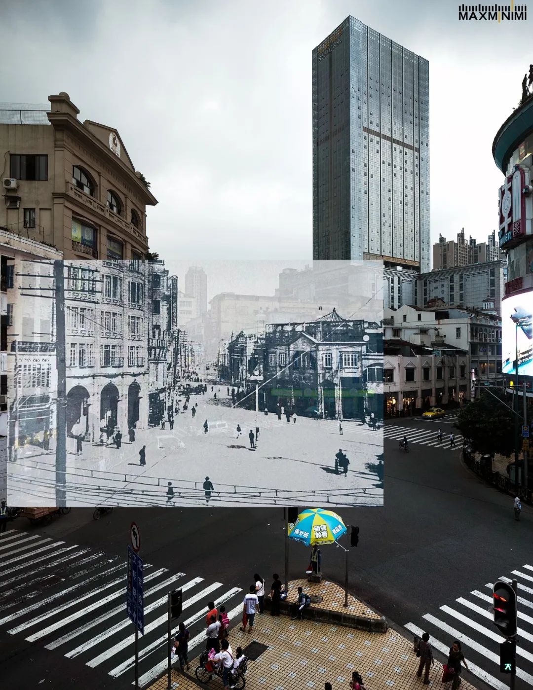 图为1920年和2020年北京路ps对比(以前曾称为双门底,后改为永汉路),黑白照片出处《老广州屐声帆影》极:在竖屏阅读时代,这种长卷式的图片似乎不那么适合如今的观看方式,你对此是否有困惑?