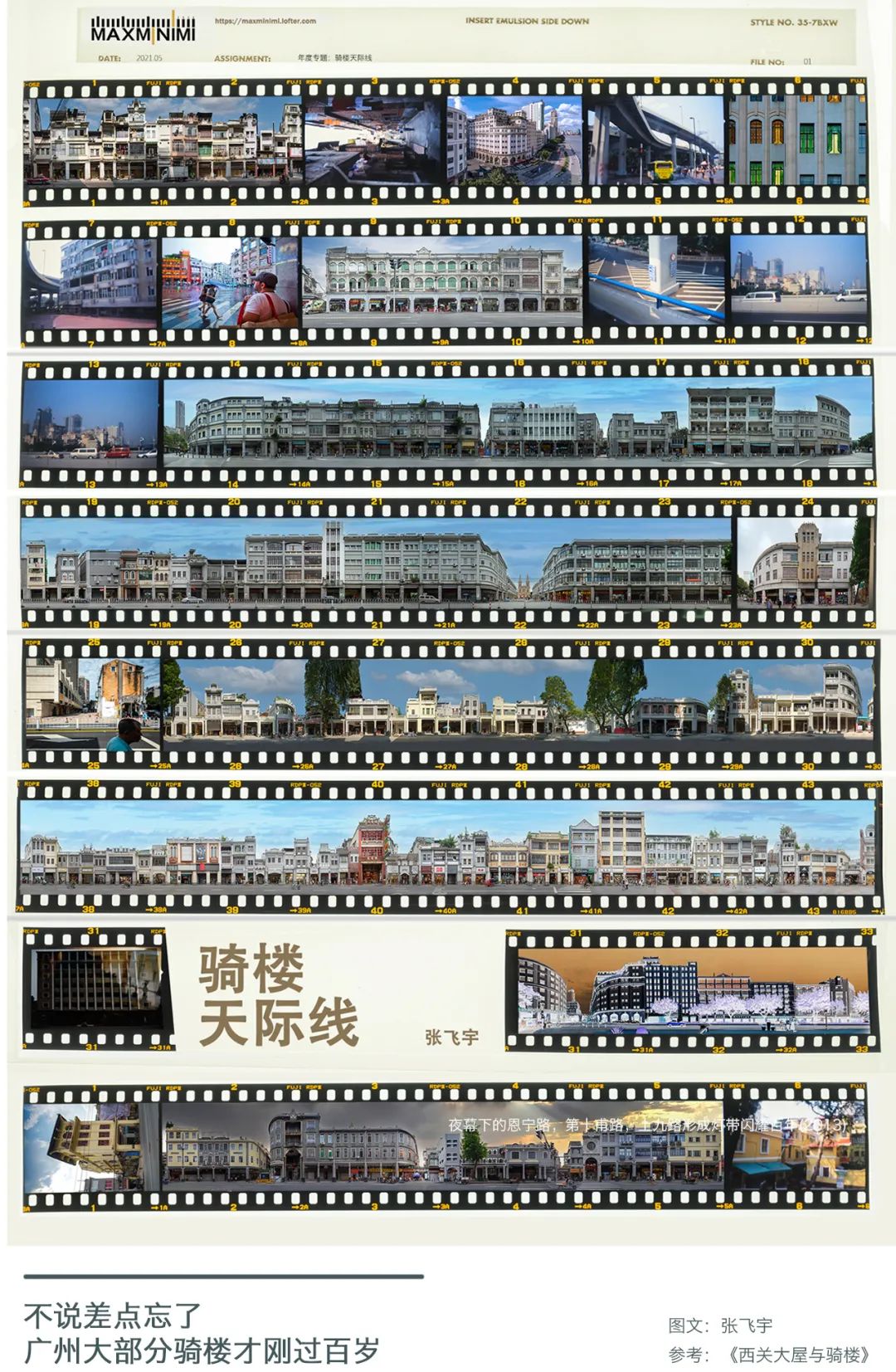 我在广州拍摄骑楼拍到一半时,也有过迷失,突然不知道自己为什么要这么辛苦地折腾,没有甲方也没有赞助商,长长的骑楼名单,酷热的广州天气,漫长而枯燥的后期处理等等,直到熬完的骑楼街图片一条条都堆在一起,做好资料搜集之后,那种崭新的角度、新鲜的视觉表达方式以及骑楼那份历史沉淀交织在一起,我才有了再辛苦也值得的顿悟。