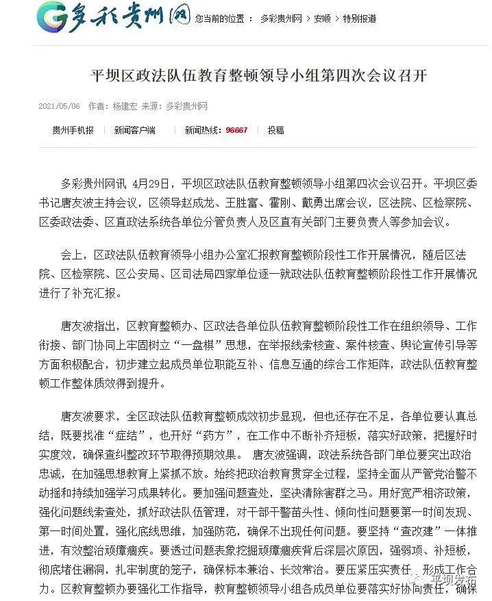 平坝区政法队伍教育整顿领导小组第四次会议召开