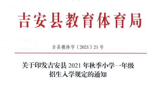 原标题:《吉安县发布今年秋季小学一年级招生入学规定》