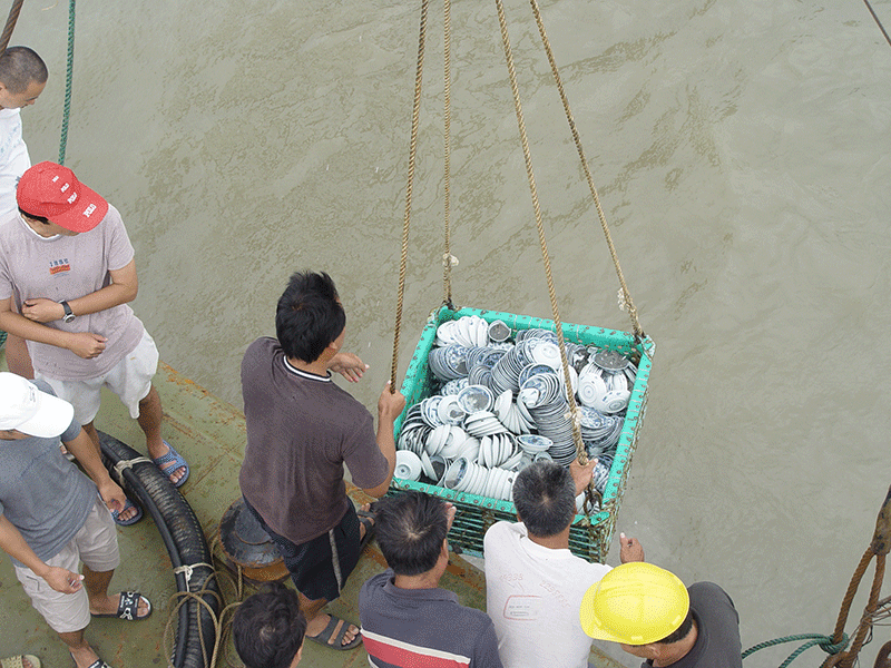 清·“碗礁一号”沉船出水瓷器“碗礁一号”是清代康熙年间运输外销瓷器的商船,发现于福建平潭碗礁附近,出水文物近2万件,多为康熙早、中期景德镇民窑精品。这些瓷器运往东南亚,除了在当地销售外,还有一部分产品由东印度公司运往欧洲。