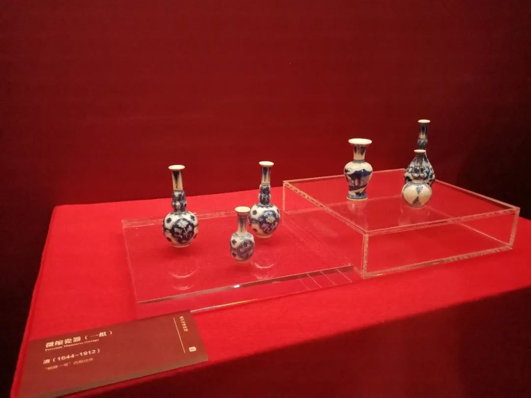 此类微型瓷器为外销瓷,器型以各式瓶为主,尺寸在10厘米高度左右,绘青花人物纹或花卉纹,器形小巧,纹饰精美。