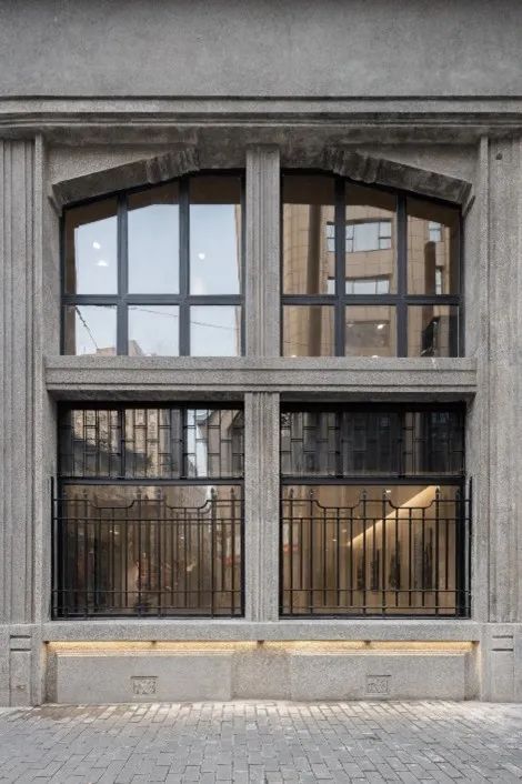 3、恢复底层窗洞,原位保护修缮铸铁栏杆拆除封堵的墙体,复原了沿街的窗洞,对发现的原始铸铁护窗栏杆进行脱漆、校正、防锈处理,并重新油漆,原位展示,使得建筑立面的历史风格得以完整重现。