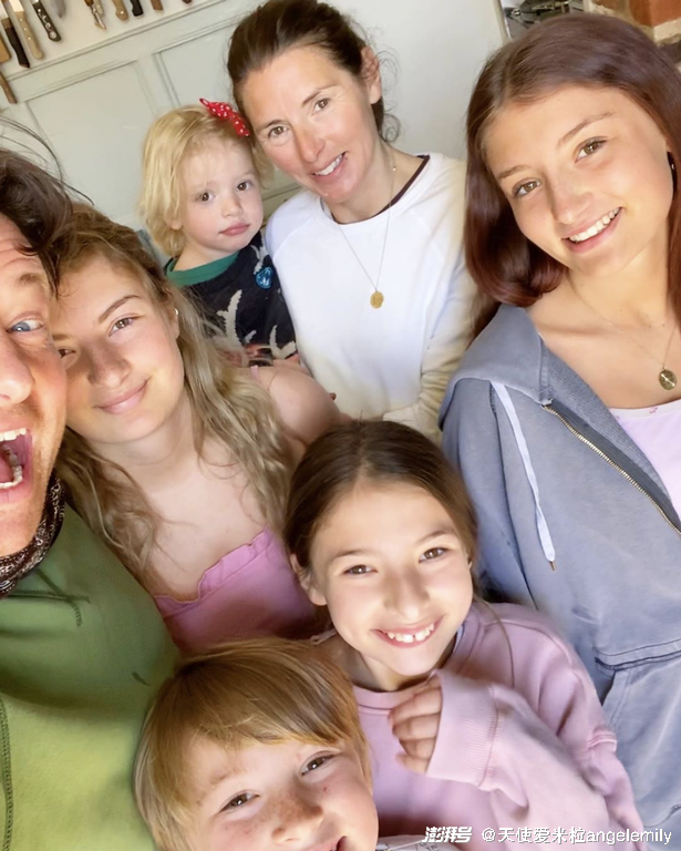 也是在事业起飞时,Jamie完成了自己的人生大事,2000年7月,Jamie和模特女友Juliette Norton(英国媒体习惯叫她“Jools”)完婚,结婚21年至今,生了5个孩子。