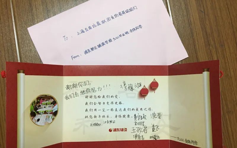 孩子们通过贺卡向志愿者表达感谢