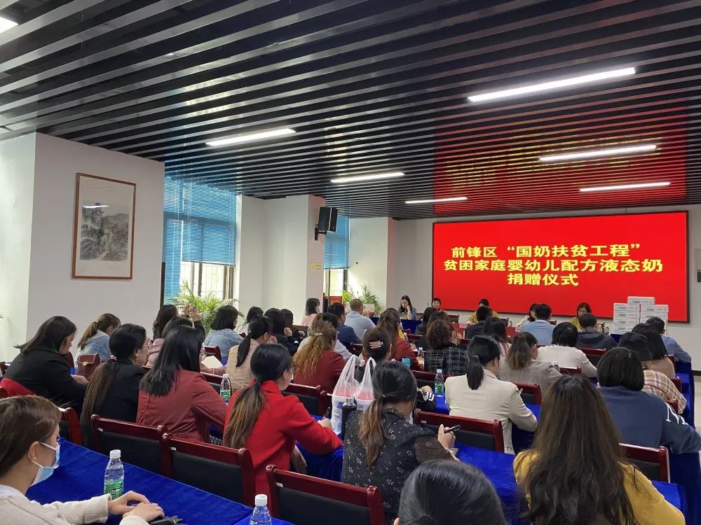 让爱流动,前锋区举行“国奶扶贫工程”贫困家庭婴幼儿配方液态奶捐赠仪式5月7日,前锋区“国奶扶贫工程项目”贫困家庭婴幼儿配方液态奶捐赠仪式在融媒体中心会议室举行。区妇联、区扶贫开发局、区卫健局、区邮政局相关负责人,北京联慈健康扶贫基金会代表,各镇街道负责人、妇联主席、卫生院工作人员,受捐代表参加捐赠活动。