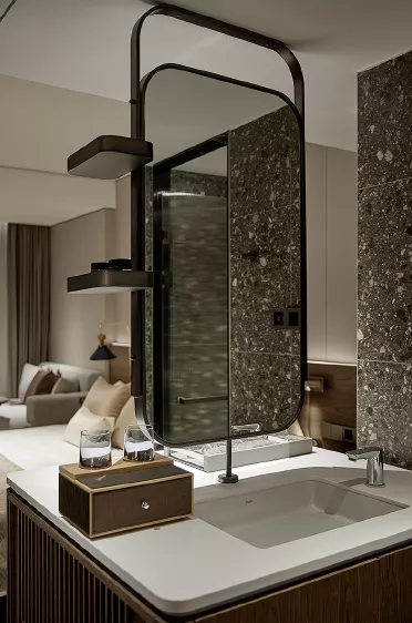 2017年,招商蛇口开始了整体卫浴装配式研究;2018年,正式成立装配式精装项目组,深入研究整体装配式精装技术,逐步在旗下长租公寓、精品酒店落地,并获得了“2019年招商局集团创新项目三等奖”,全面展示了其产品设计理念和品质。