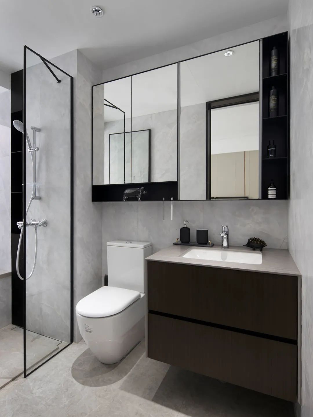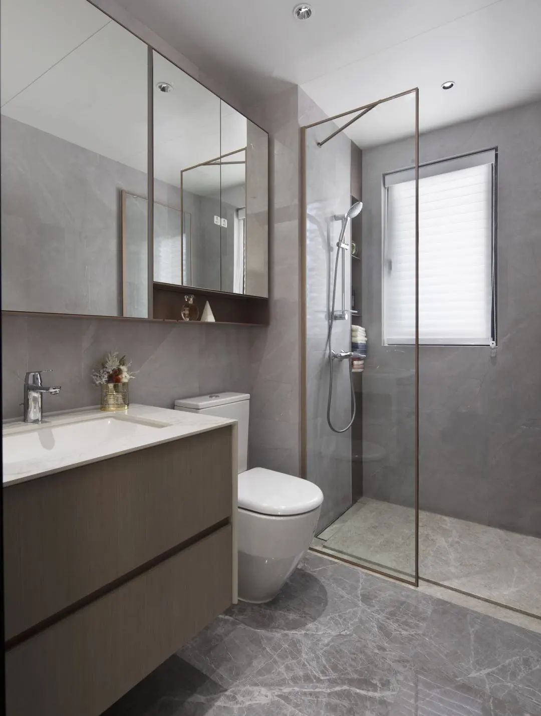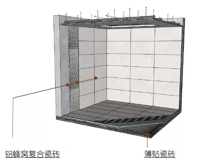 装配式卫浴,采用整体结构性防水构造,FRP或铝蜂窝整体成型底盘让卫生间没有渗漏的隐患。墙面采用铝蜂窝复合瓷砖墙板,与传统瓷砖铺贴相比,减少了缝隙,更没有空鼓脱落的风险。