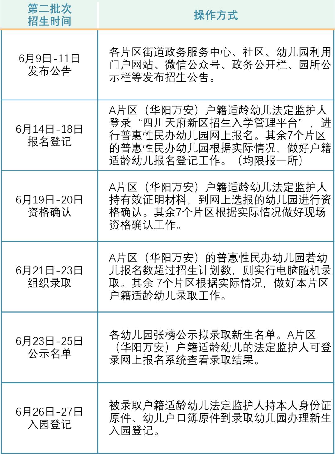 新区公办、普惠性民办幼儿园分两个批次确定学位,凡前批次已确定学位的适龄幼儿不再参加以后批次的学位确定。