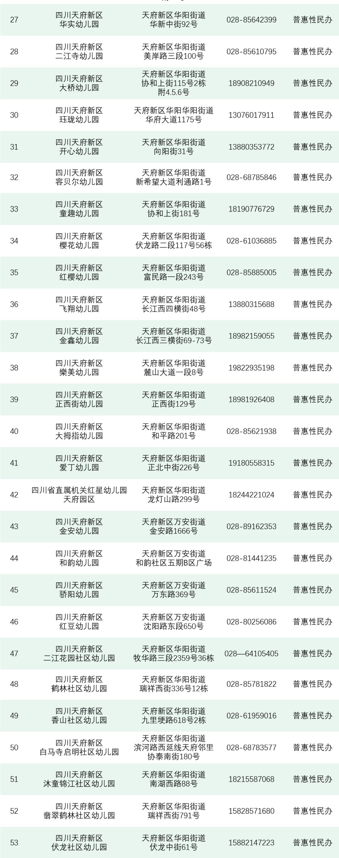 (三)40中改建办园点(27幼领办)、兴城嘉苑二期改建办园点(12幼领办)是成华区为扩大公办幼儿园学位供给,利用既有建筑改建公办幼儿园办园点,实际开园时间根据建设方实际施工进度而定,可能延迟开园,家长可根据自身实际进行选择。