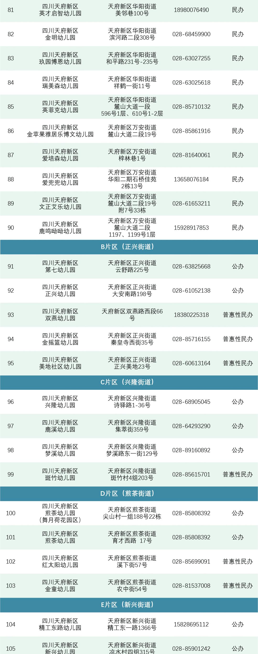 结合适龄幼儿人数、现有园所资源,参照街道行政区域将新区划分为8个招生片区。华阳街道和万安街道为1个片区,其余7个街道各为1个片区。