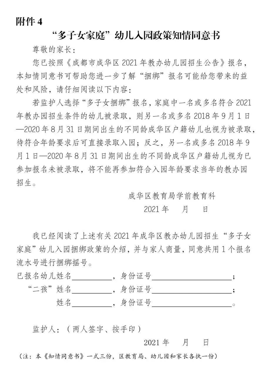(4)“多子女家庭”如选择捆绑摇号方式,须填写《“多子女家庭”幼儿入园政策知情同意书》。