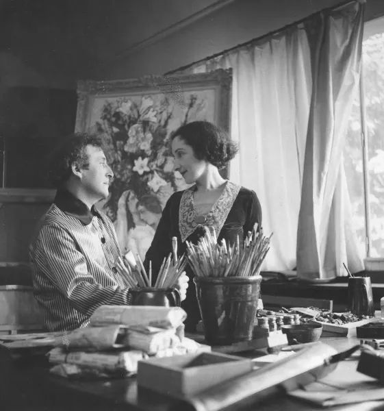 恋人是夏加尔不竭的灵感,亦成为他无数画作里的主人公,由此也诞生了夏加尔作品里最著名的意象:飞翔的恋人。“只要我打开房间的窗户,她就会出现在那里,带来碧蓝的天空、爱情和鲜花。从始至终,她都穿着一身白纱或黑裙,翱翔在我的画布上,指引着我的艺术之路。”