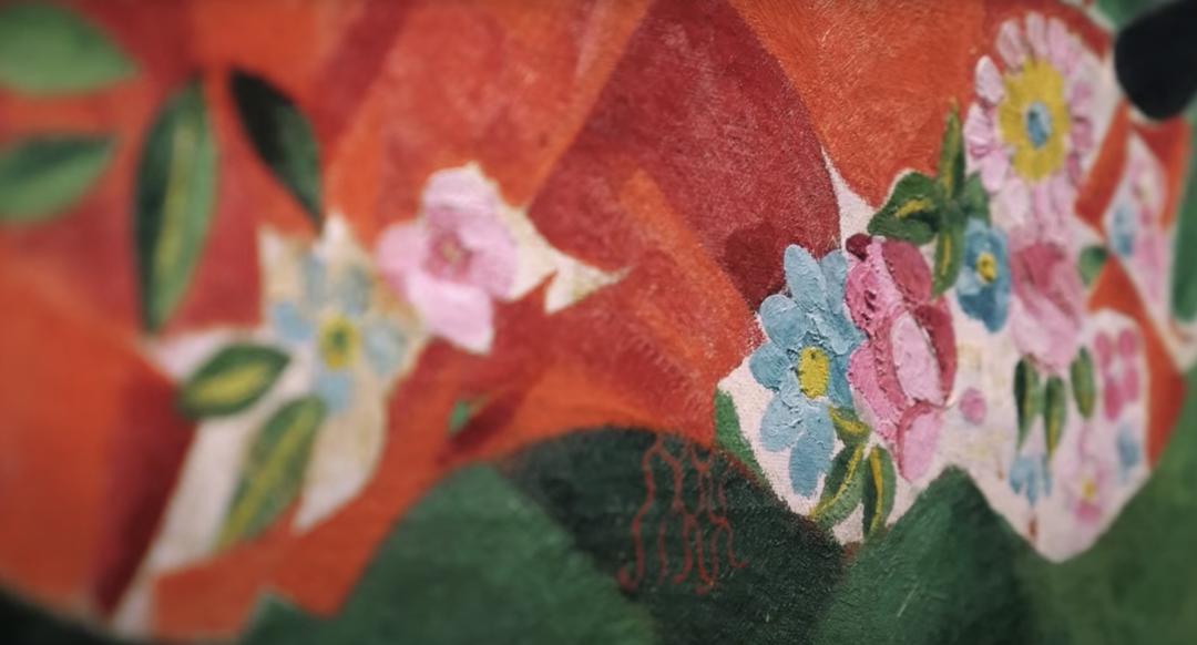 仿佛无边的黑夜正从画里溢出,一滴一滴地渗透画布、洇满画框,再从这浓稠的墨绿里,挤出团团肥厚的花朵来。