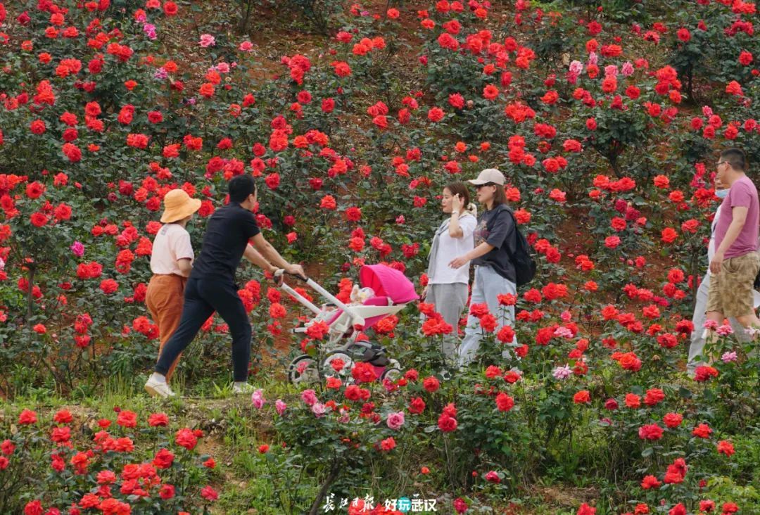 在江夏花海石林,游客在鲜花丛中穿行,感觉幸福像花儿一样绽放。江夏八分山绿荫环抱,风景宜人,登顶可以看到城市全景,是看夕阳日落的绝佳之地,游客不多,更不需要门票,真是一块宝藏地。