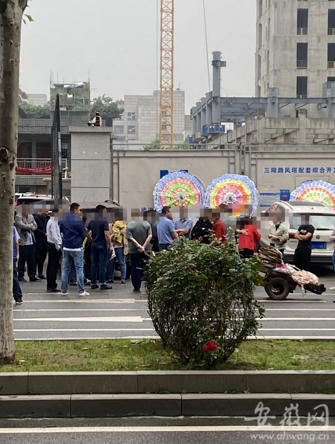 5月11日一位目击者告诉新安晚报、安徽网、大皖新闻记者,5月10日下午两点半,他睡午觉醒来后看到了那惊险又揪心的一幕。“吊篮里有人,在空中乱飞摇摆,往那栋楼上撞了好几次。”这位目击者表示,当时风很大,楼下不少车辆被风吹起的东西砸坏。5月11日上午,他看到出事的工地前摆放了花圈,有人在现场痛哭。