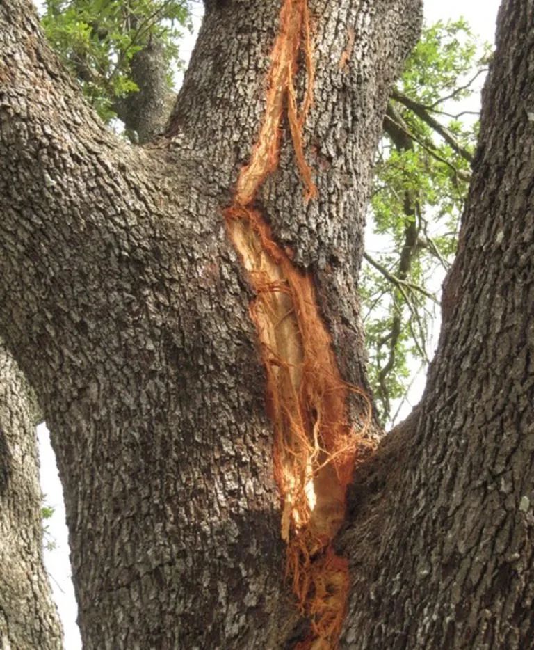 被闪电劈中的树 树:我裂开了只有肉体凡胎的同学们,在遇到雷雨天气时,如果正在室内,最好不要乱跑了,毕竟现在大多数建筑物都有防雷装置保护;