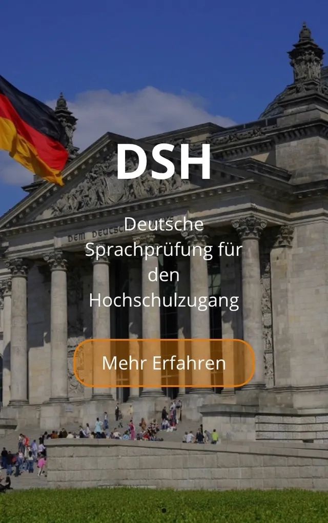 德国高校外国申请者入学德语考试(DSH):DSH全称是Deutsche Sprachprüfung für den Hochschulzugang ausländischer Studienbewerber,它由德国各高校单独组织,但基本模式是统一的,一般包括笔试和口试两个部分(有些学校可根据学生笔试成绩的优异程度,免去其口试)。DSH一般均在学期之初举行。学校寄给申请者的入学通知中会写明DSH举行的时间和地点。所以这类证书,得首先申请高校,获得录取通知之后再(去德国)参与考试。
