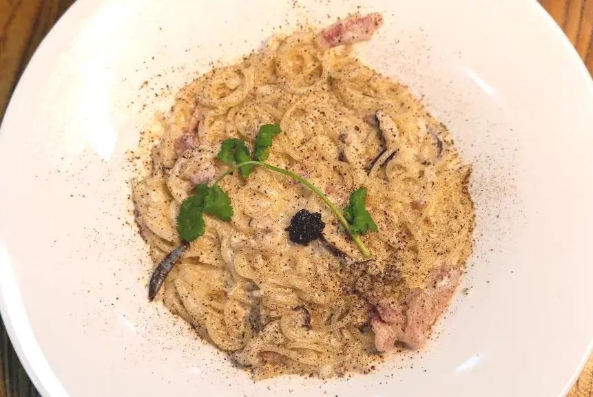 曾代表交大参加全国比赛的厚烧肉!特色酱汁和厚烧肉碰撞出奇妙美味~黑松露奶油培根意面