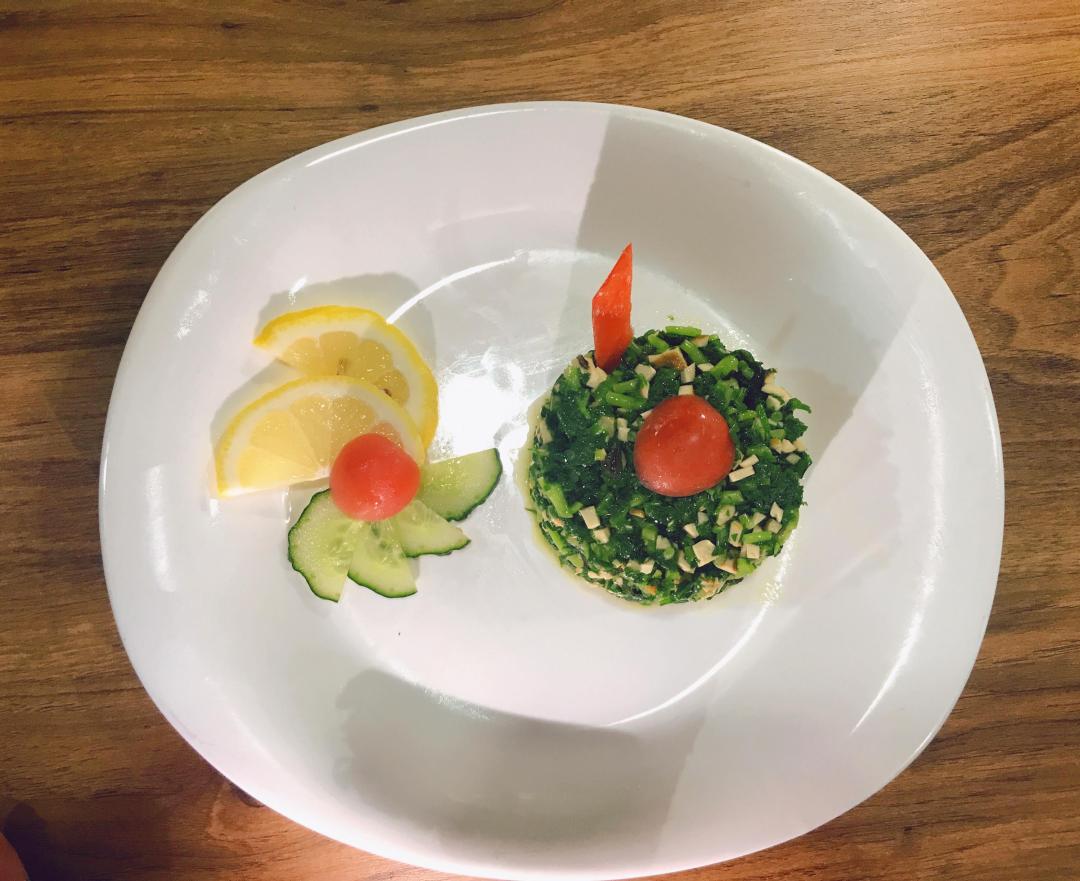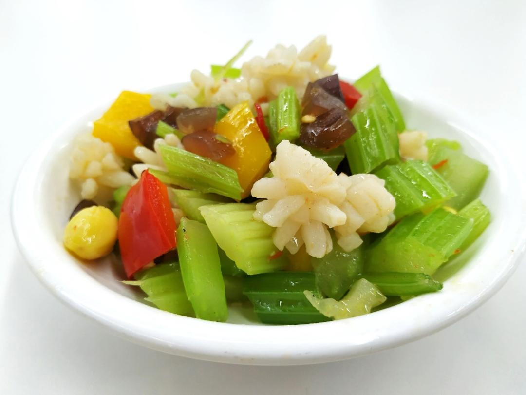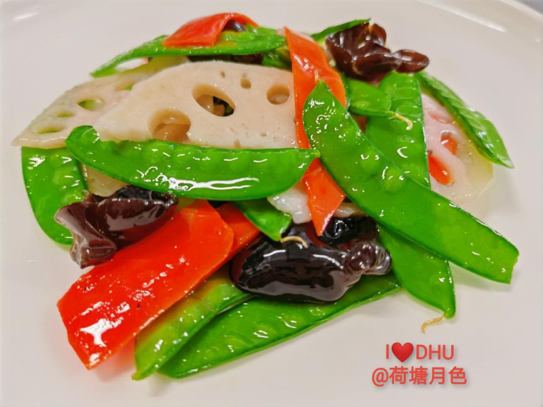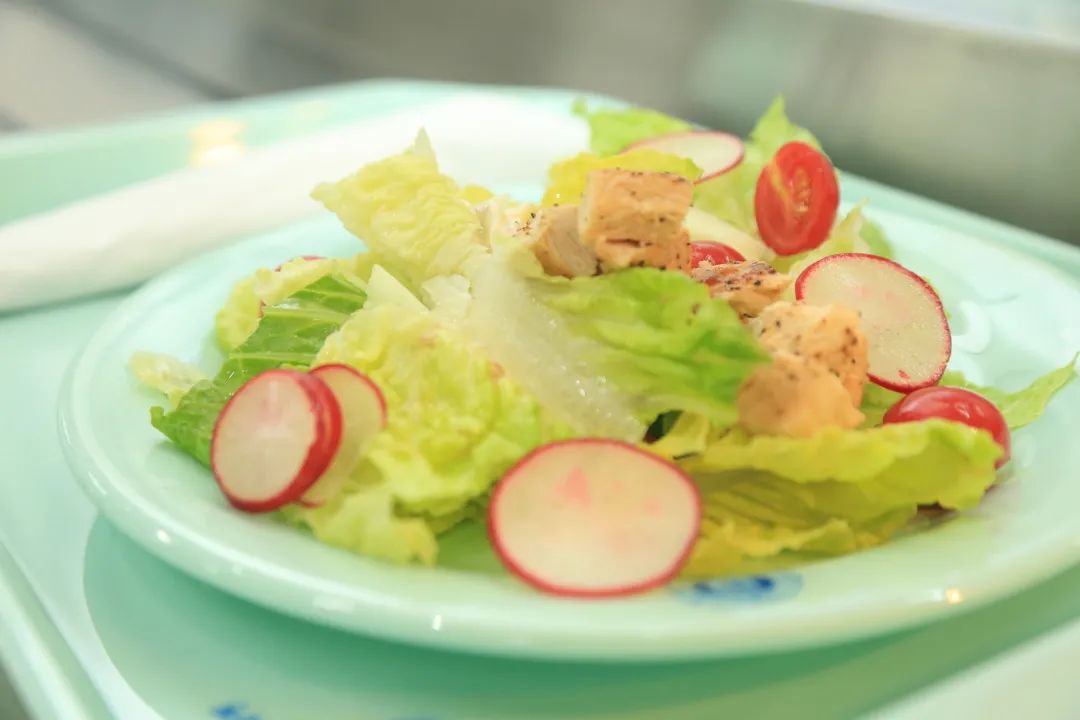 红与绿、黑与白的搭配,色泽清爽、营养丰富。上海震旦职业学院
