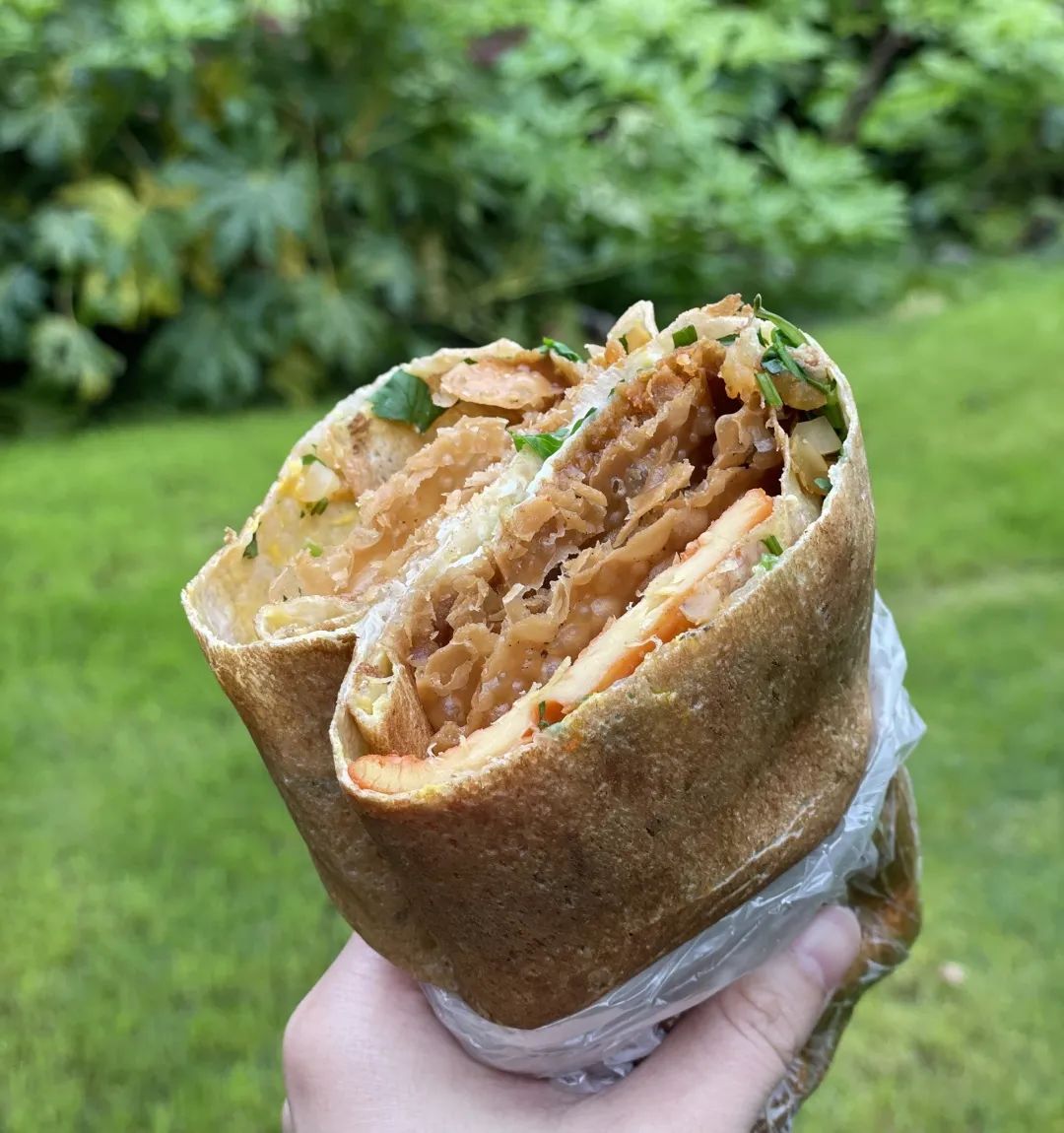 杂粮外皮加以鸡蛋,包裹香而酥脆的脆饼,加上榨菜、葱花等辅料,最后抹上甜面酱,咬上一口,上头!竹笼饭