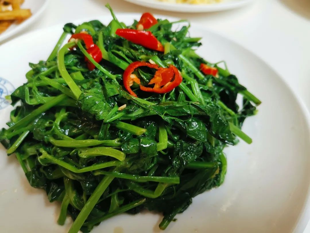 枸杞头带有微微凉意与自然苦味,先苦后甘,回味无穷。品尝地点: