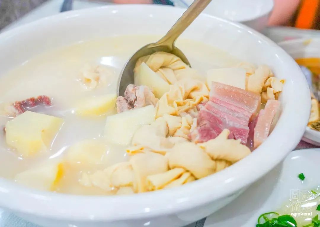 草头非常新鲜,淡淡的酒香,鲜而不咸,腌笃鲜满满一大碗,是偏甜的口感,用料很丰富。老太太每天就坐在店里最角落看报,有客人来就帮忙点单,几十年下来也收获了无数老食客。地址:进贤路134号