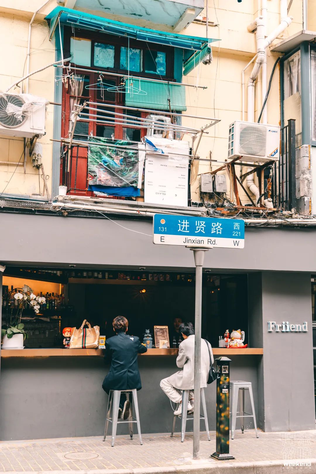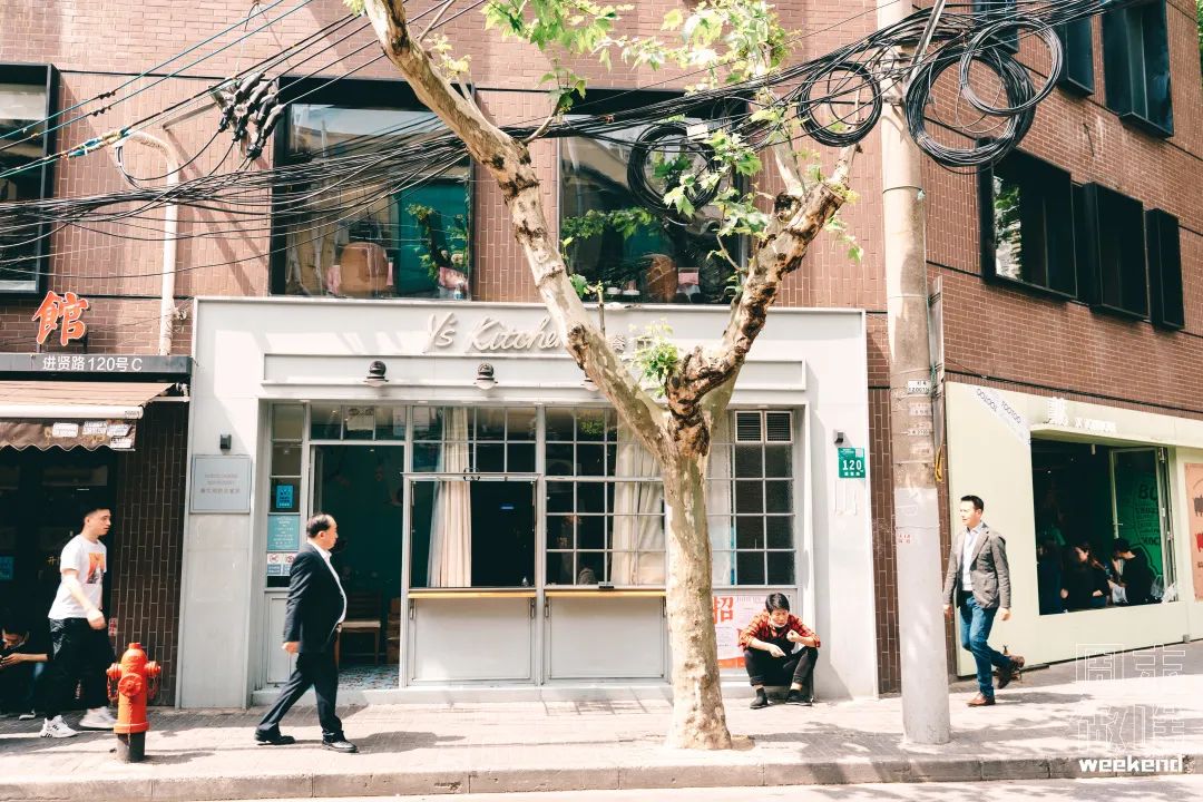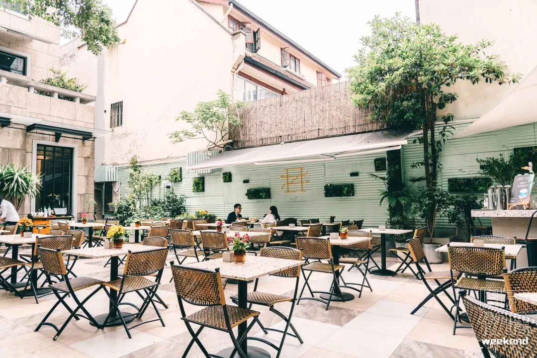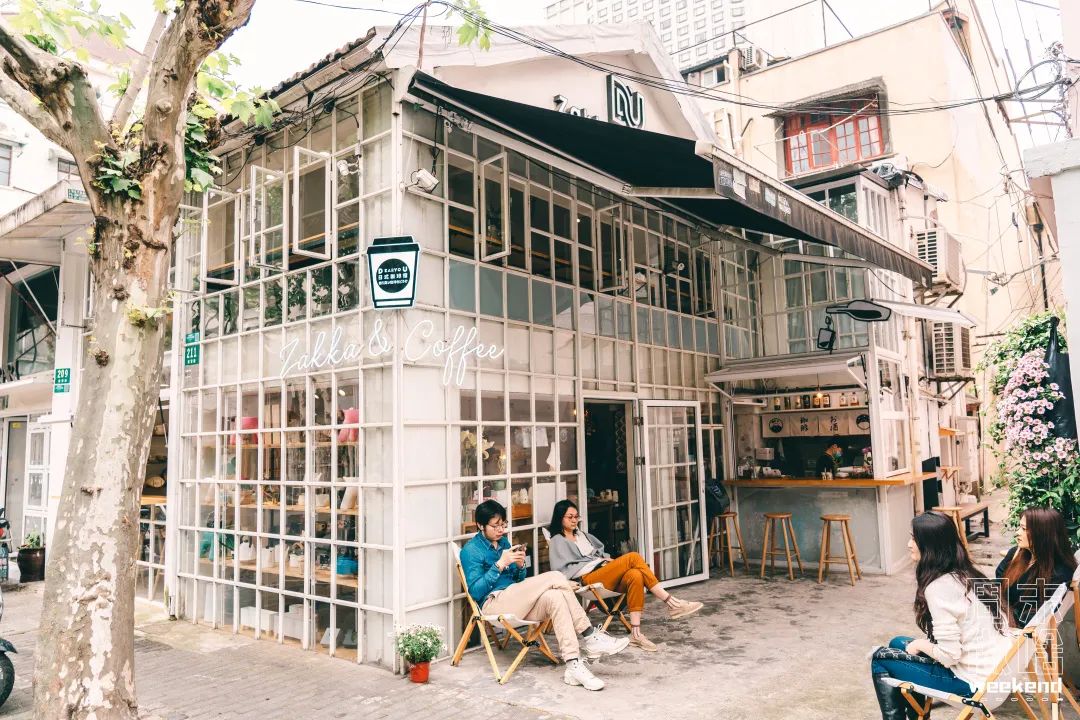 门前的庭院,有盎然的绿植,摆放着舒适的白色帆布躺椅,坐在路边喝一杯咖啡,是进贤路的时髦,也是难得可觅的一隅安闲之处。
