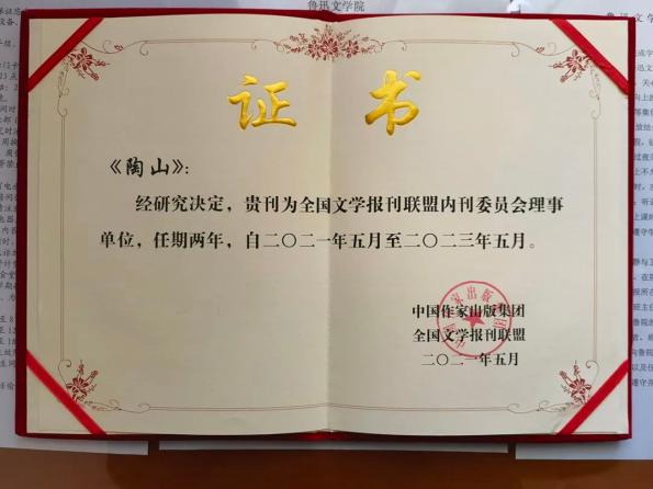 2021年5月6日-8日,全国文学内刊会议在北京鲁迅文学院召开。会议由中国作家出版集团、中国作协社联部主办,中国作家网承办。来自全国20余省市区的50余家文学内刊主编等参加会议,同时全国文学报刊联盟内刊委员会宣布成立。《陶山》等19家刊物成为全国文学报刊联盟文学内刊委员会理事单位并获颁证书。《陶山》主编牛兰学参加会议并进行大会发言和《陶山》推介。《陶山》成为河北省文学内刊唯一一家理事单位。