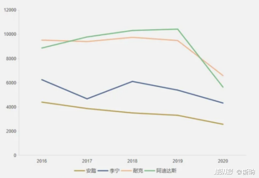 除了收益方面强差人意,安踏在品牌知名度、美誉度方面也不如行业其它竞争对手。