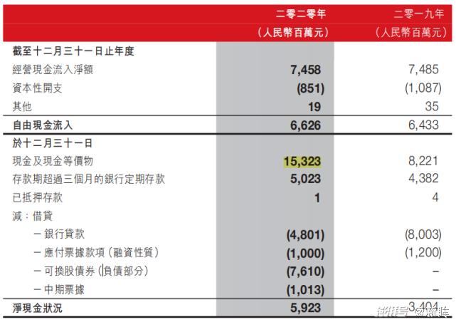 图:安踏集团现金流状况 (来源:安踏官网)
