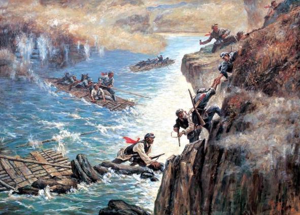 1934年10月,第五次反“围剿”失败后,中央主力红军为摆脱国民党军队的包围追击,被迫实行战略性转移,退出中央根据地,进行长征。1934年10月下旬,中央红军主力8万余人从江西瑞金出发,至同年12月初,红军已连续突破国民党军队的四道封锁线,进至湘西。1935年1月7日,中央红军占领遵义。1月15至17日,中共中央在遵义举行了政治局扩大会议,风声鹤唳的年代,灯火昏暗下激烈地探讨与投票,确立了毛泽东在中共中央和红军的领导地位,纠正了“左”倾冒险主义在军事上的错误。会后,红军撤离遵义,在川黔滇边和贵州省内迂回穿插。四渡赤水、南渡乌江;挺军逼贵阳、抢渡金沙江。江水滔天云岸低,游鱼不懂铁索桥冲天的火舌与怒吼,但红军战士洒在江上的热血却是江水永远涤荡不掉的鲜红烙印。