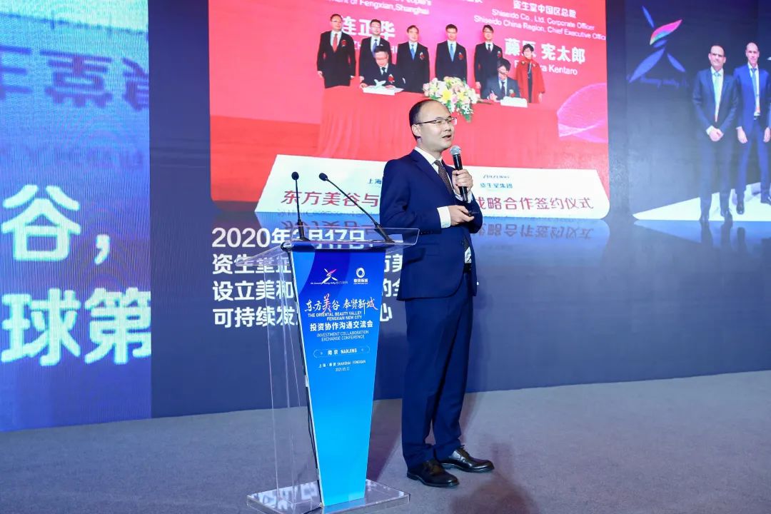 △现场介绍“东方美谷·奉贤新城”袁泉表示,奉贤还将力争建设成为“五个新城”的标杆和典范,以高于中心城区的标准配置公共服务设施,按照“产城融合、功能完备、职住平衡、生态宜居、交通便利、治理高效”的24个字原则来推进城市建设。而东方美谷作为奉贤的产业品牌、城市品牌,在下一轮发展中会被寄予更多的政策倾斜,会持续优化营商环境、不断提升服务质量,更好满足各位企业家在上海、在奉贤的发展需求。因此,袁泉也向企业家们发出诚挚邀请,“奉贤需要聚天下英才,奉世界豪商,在来奉投资方面,我们求贤若渴,欢迎一切优秀企业来奉贤交流、考察、投资、落户。”