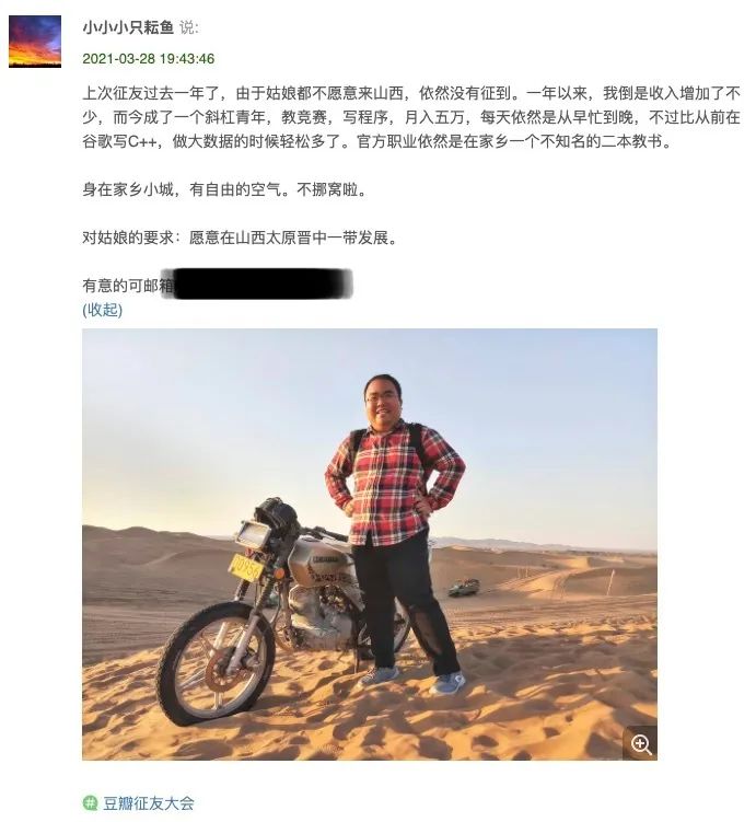 前段时间,在豆瓣上有个很火热的征婚贴: