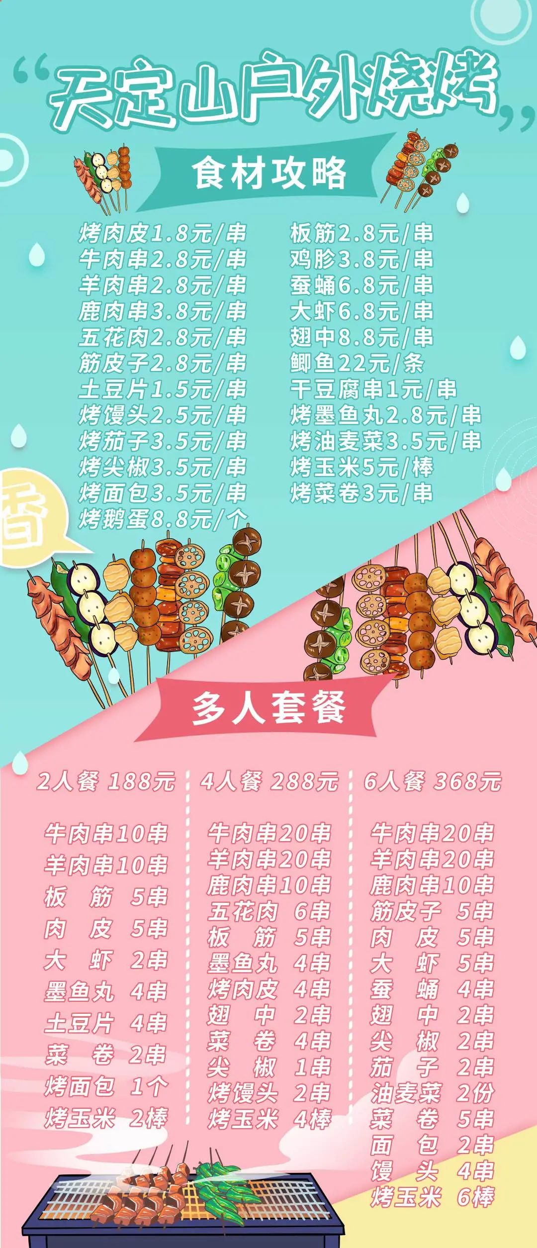 PS:多人套餐包含烧烤炉、碳、夹子、扇板、刷子和烧烤调料。每增加一炉碳需另付费20元。NO.2