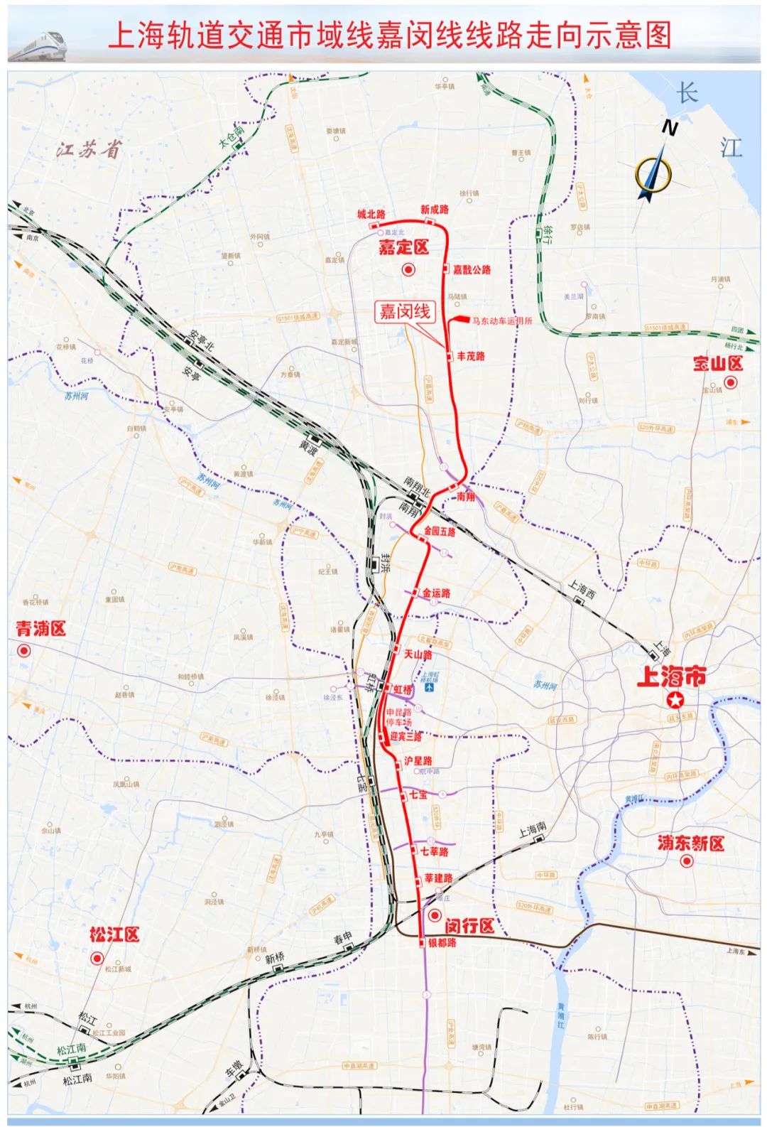据介绍,嘉闵线是上海市域网络中南北向的骨架线路,正线全长44.04公里,途经嘉定区、闵行区。自嘉定城北路站,经新成路站、嘉戬公路站、丰茂路站、南翔站、金园五路站、金运路站、天山路站、虹桥站、迎宾三路站、沪星路站、七宝站、七莘路站、莘建路站,至闵行银都路站。